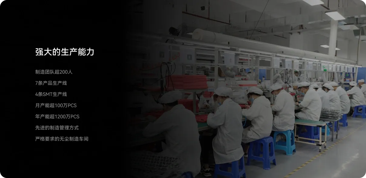 生产线,200多名工人、100多名工程师团队,月产能高达1KK